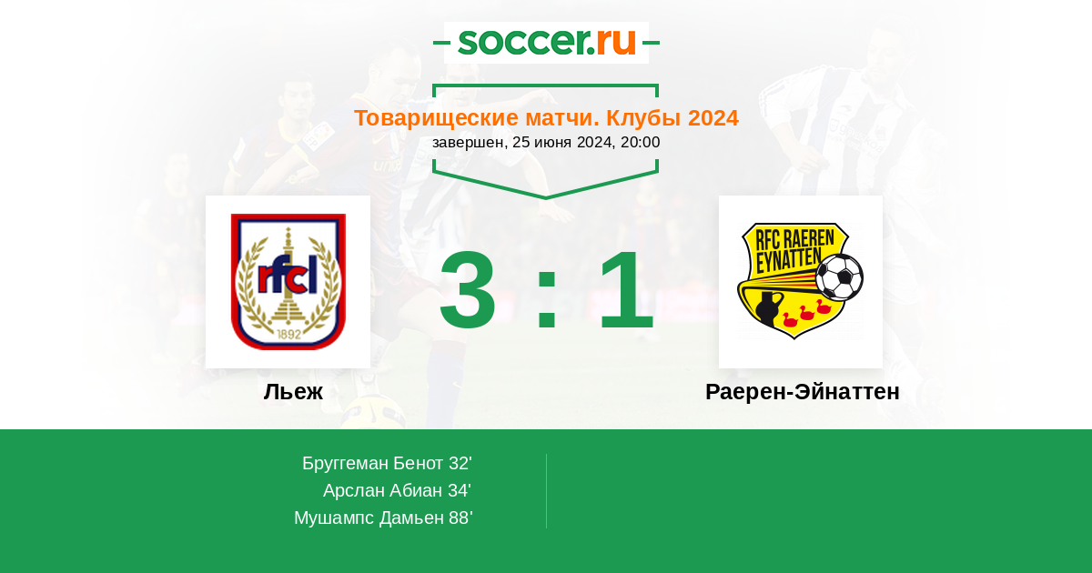 Протокол матча Льеж против Раерен-Эйнаттен