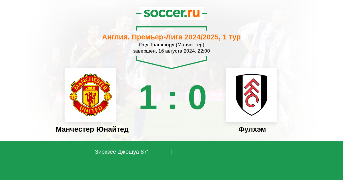 Протокол матча Манчестер Юнайтед против Фулхэм