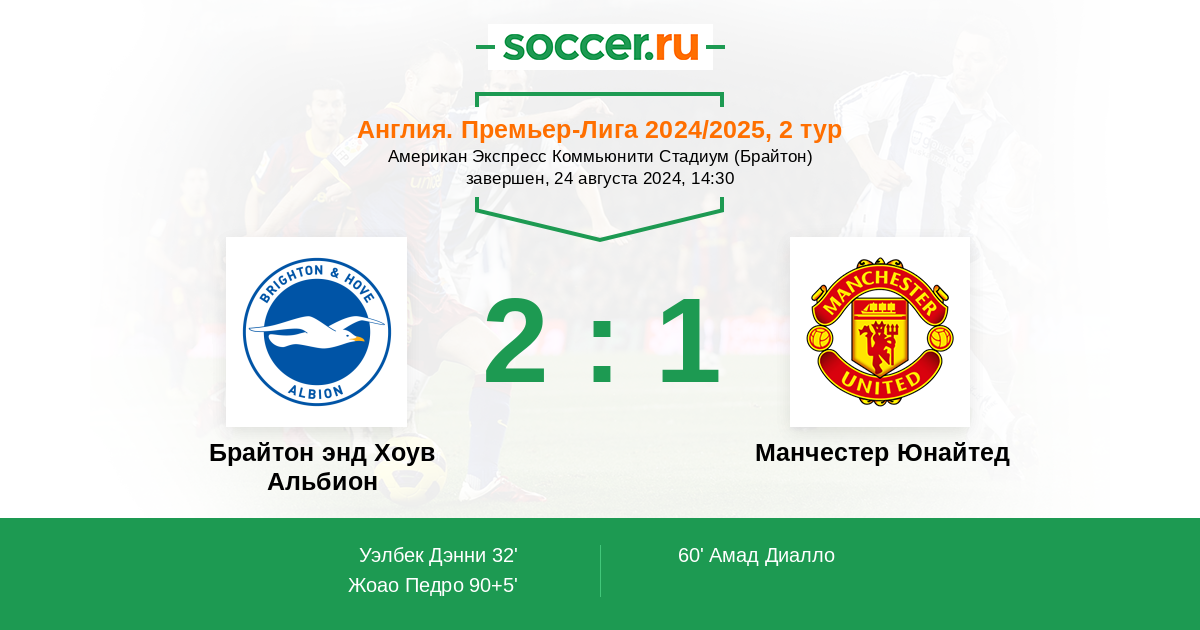 Протокол матча Брайтон энд Хоув Альбион против Манчестер Юнайтед