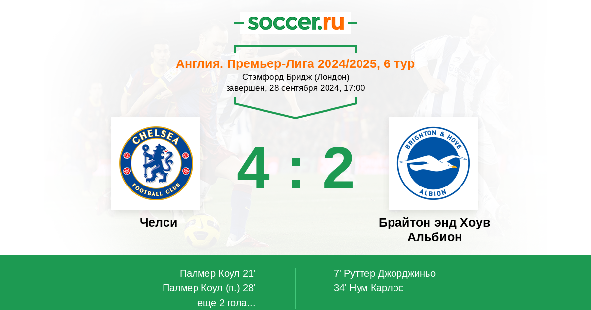 Смотрим второй и надеюсь глы будут в ворота Брайтона!