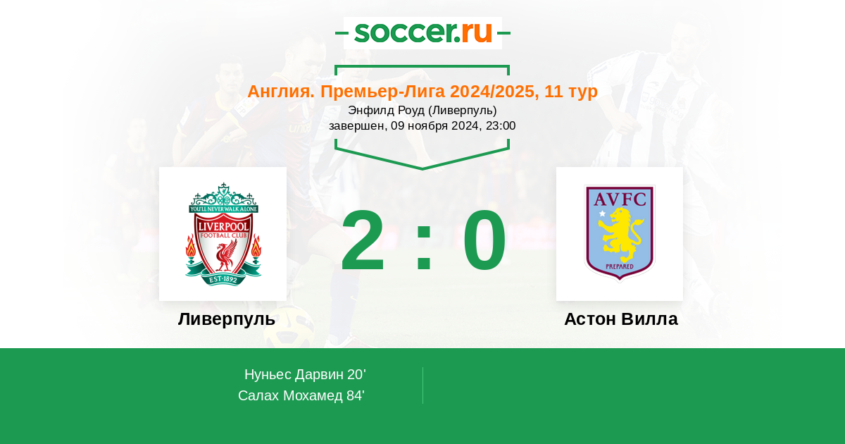 Астон Вилла так же провела игру в Лиге Чемпионов, где сыграли в Бельгии против Брюгге и проиграли, это стало первой осечкой в Лиге Чемпионов, ну и это было третье поражение суммарно, что-то Вилла слегка сдала в плане атаке, теперь приезд к Ливерпулю, где будет очень сложно выиграть.