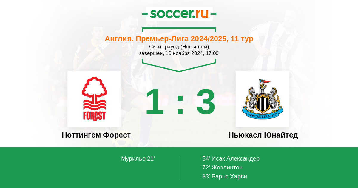 Протокол матча Ноттингем Форест против Ньюкасл Юнайтед