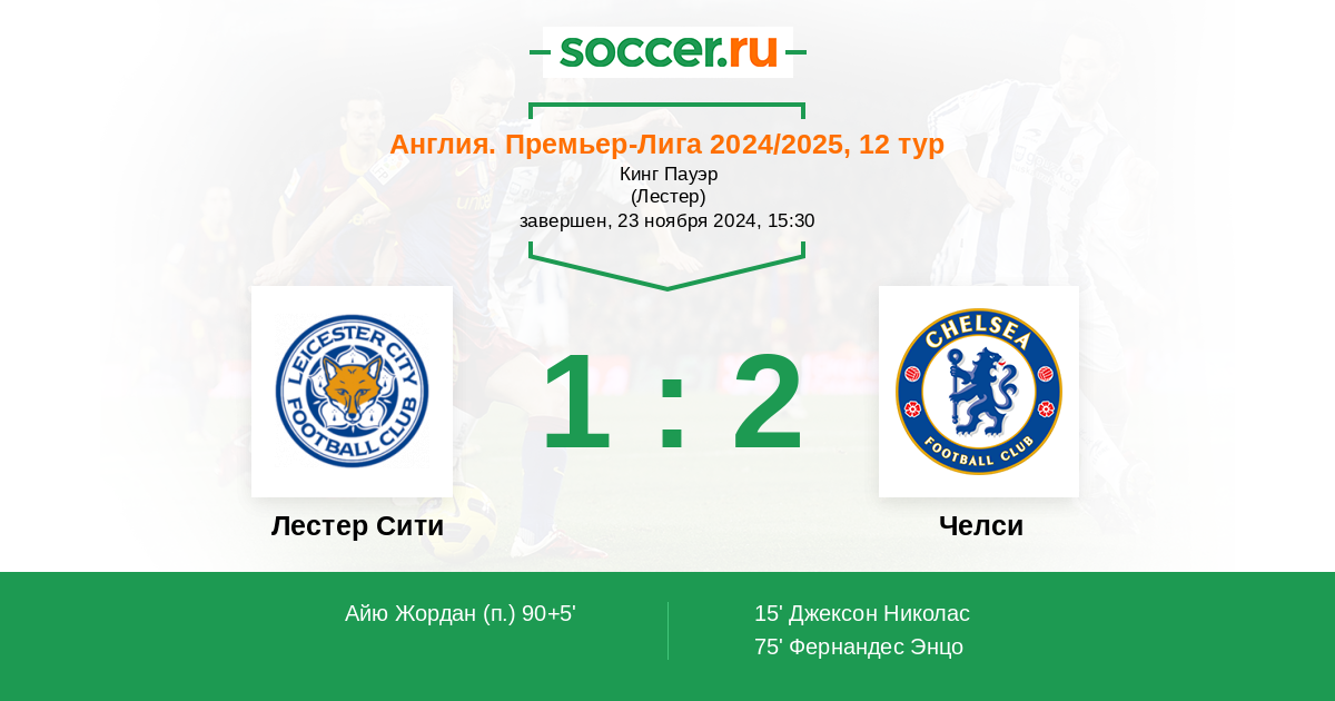 В матче английской Премьер-Лиги между командами Лестер Сити и Челси смею предположить победу гостей, потому как они располагаются выше в турнирной таблице, плюс результативнее играют в атаке и надёжнее обороняются.