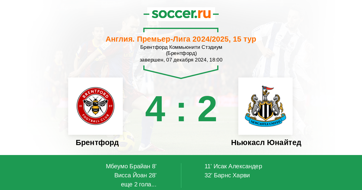 Протокол матча Брентфорд против Ньюкасл Юнайтед