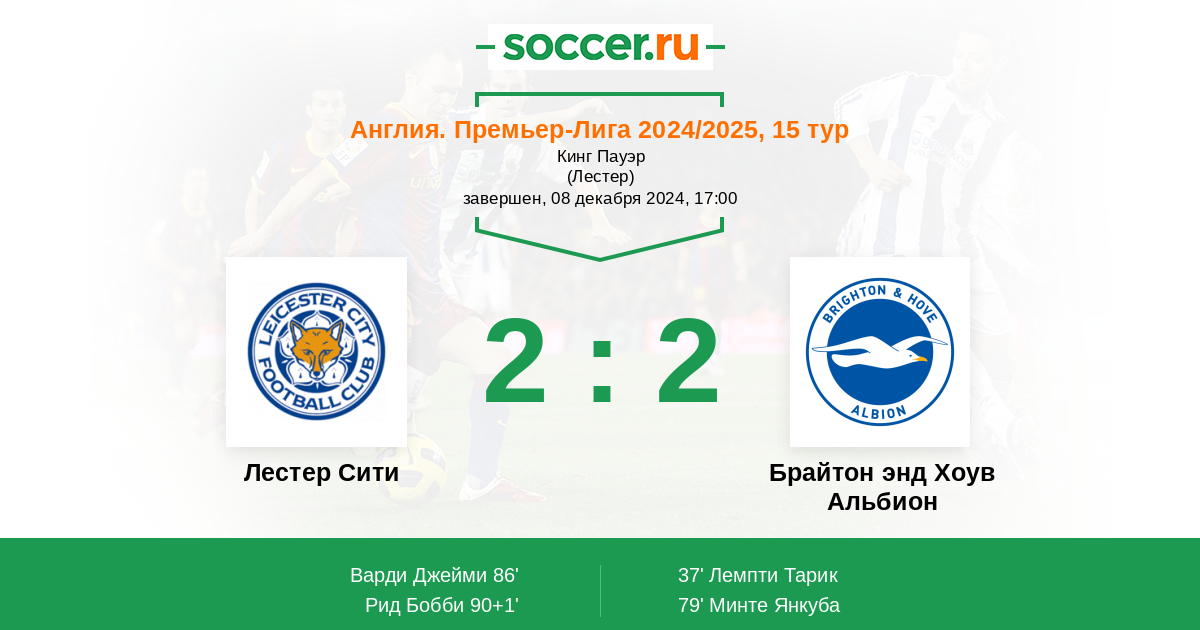 Протокол матча Лестер Сити против Брайтон энд Хоув Альбион