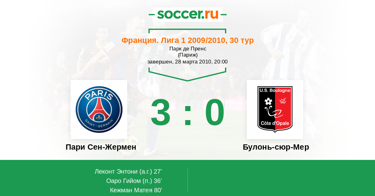 Протокол матча Пари Сен-Жермен против Булонь-сюр-Мер