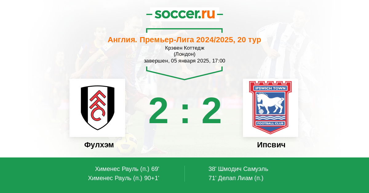 Ипсвич сейчас на грани вылета из АПЛ и он будет бороться, но в гостях у крепкого Фулхэма ему не устоять. Игра не станет образцовой, но зрителям она понравится потому, что хозяева возьмут три очка. Счет 2:1.