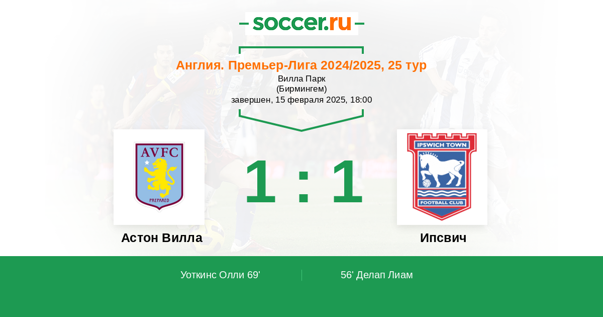В предстоящем матче 25 - го тура английской Примьер-Лиги между командами Астон Вилла Бирмингем и Ипсвич Таун , моим фаворитом на победу является команда хозяев Астон Вилла , так как они играют лучше