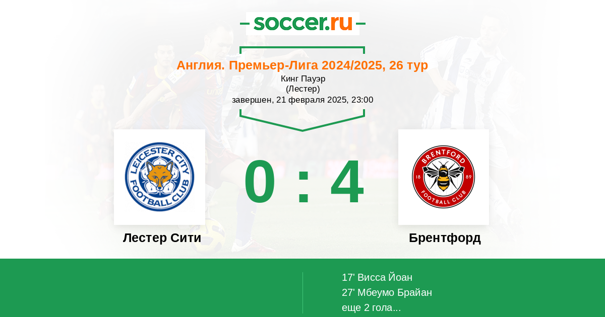 Протокол матча Лестер Сити против Брентфорд