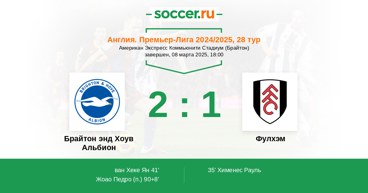 Протокол матча Брайтон энд Хоув Альбион против Фулхэм