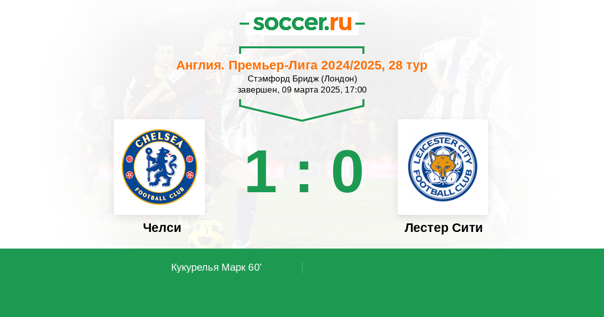 В предстоящем матче 28-го тура английской Премьер-Лиги между командами Челси и Лестер Сити, фаворитом является команда хозяев, так как главная цель попасть в четвёрку первых, Лига чемпионов хороший стимул, чтобы победить сегодня. Ставлю на победу Челси 2:0.