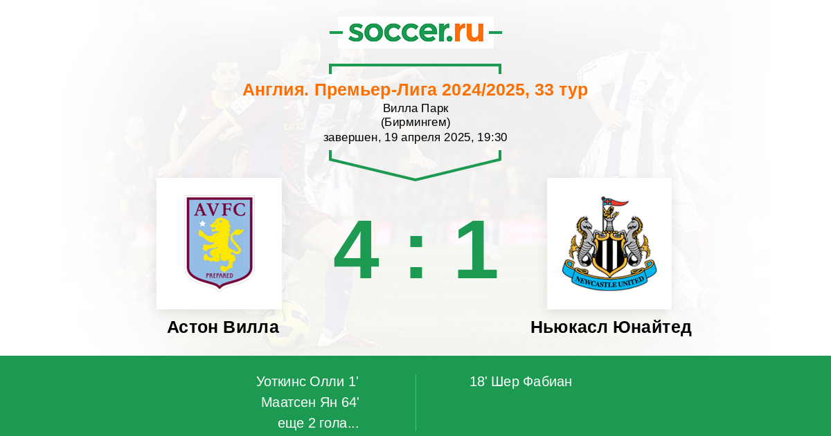 Протокол матча Астон Вилла против Ньюкасл Юнайтед