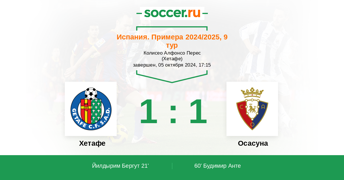 Протокол матча Хетафе против Осасуна