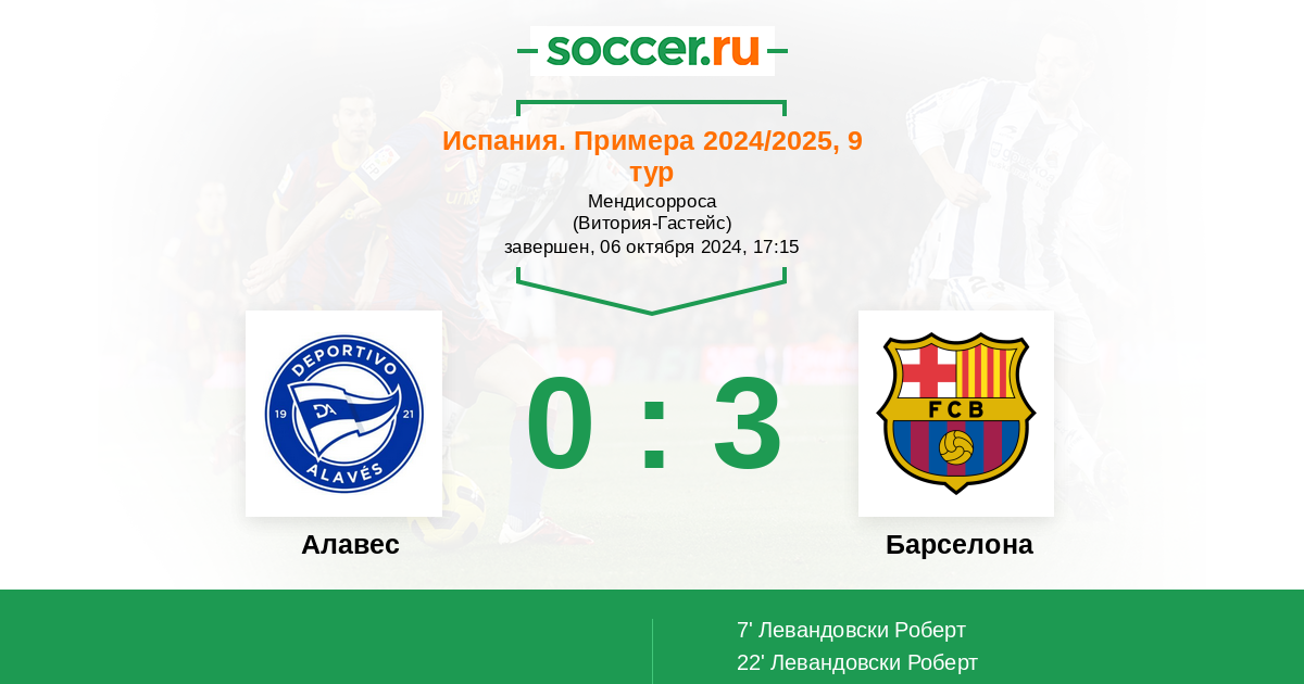 Протокол матча Алавес против Барселона
