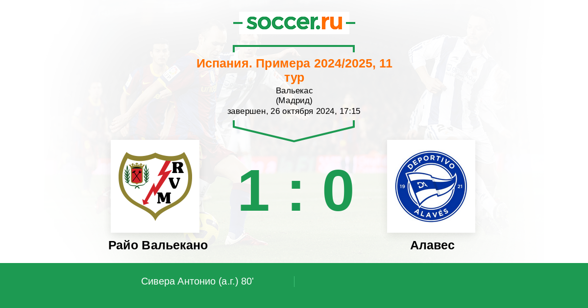 Протокол матча Райо Вальекано против Алавес