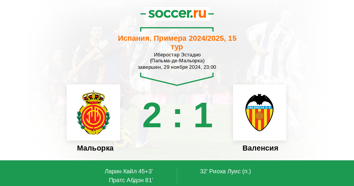 Протокол матча Мальорка против Валенсия