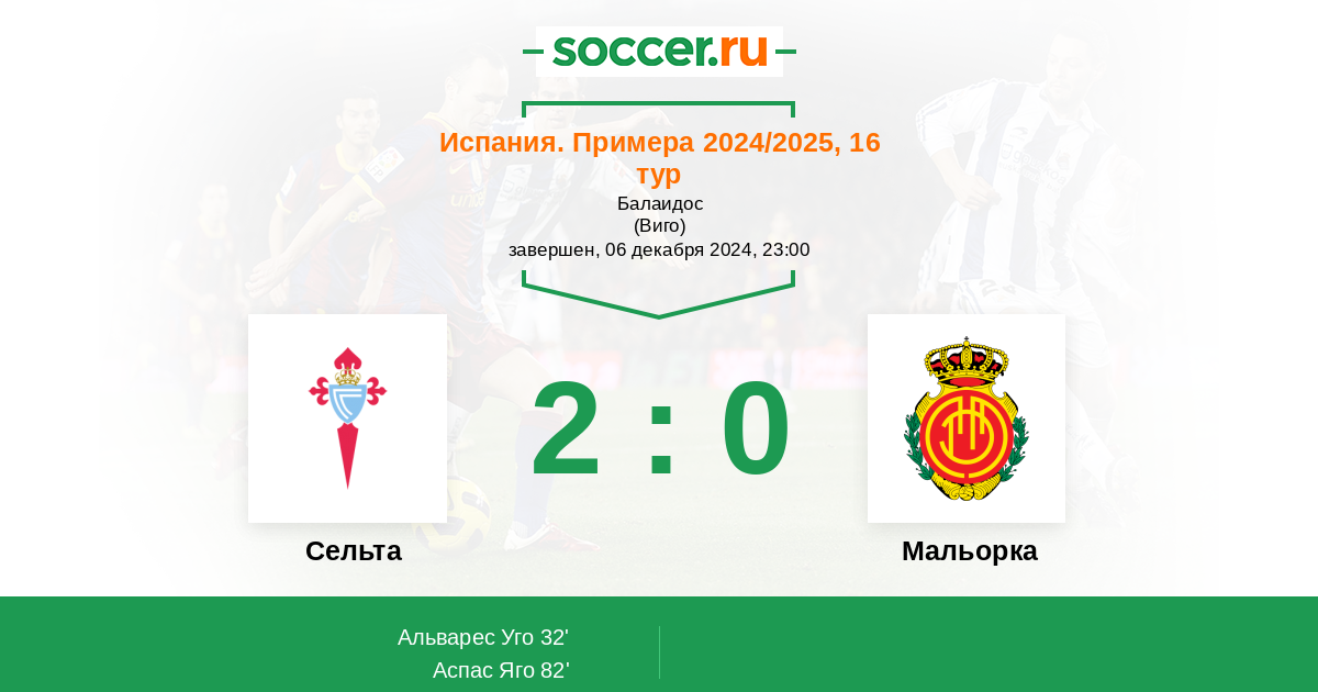 Протокол матча Сельта против Мальорка