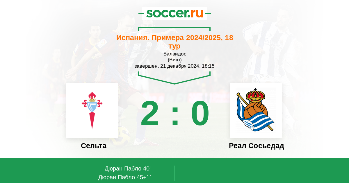 Протокол матча Сельта против Реал Сосьедад