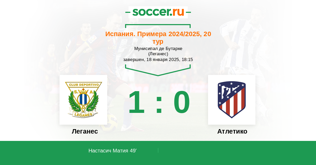 Протокол матча Леганес против Атлетико