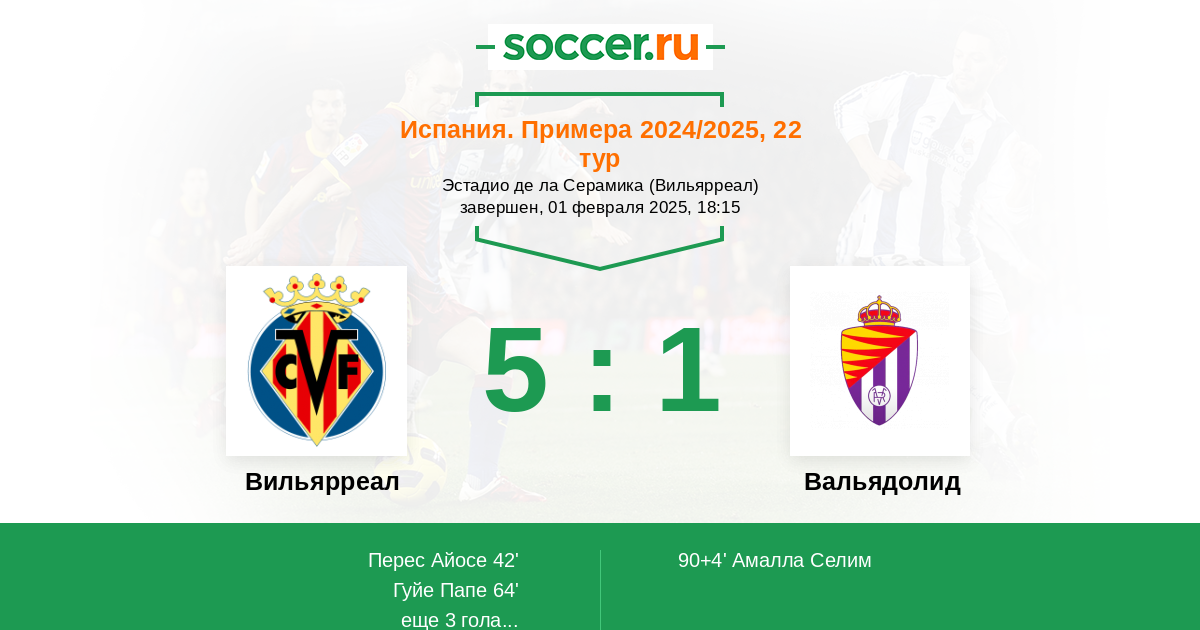 Протокол матча Вильярреал против Вальядолид