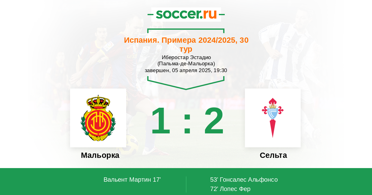 Протокол матча Мальорка против Сельта