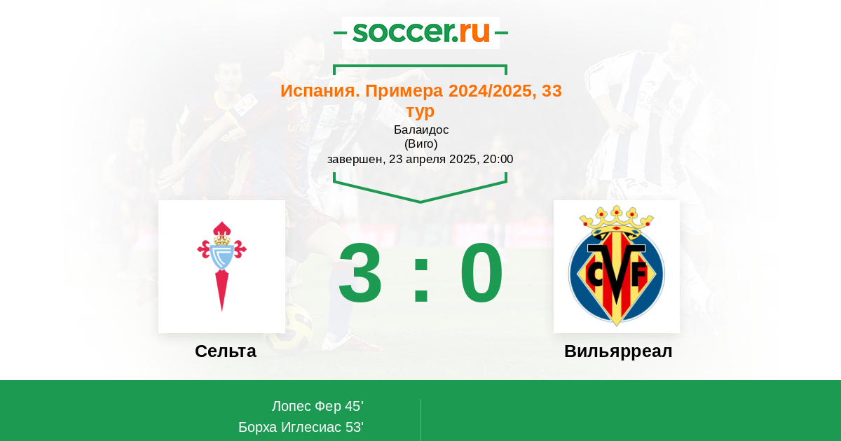 Протокол матча Сельта против Вильярреал
