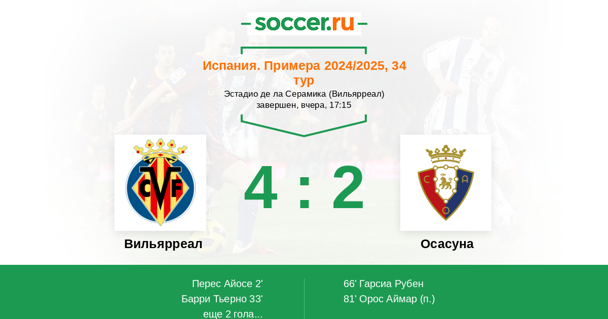 Протокол матча Вильярреал против Осасуна