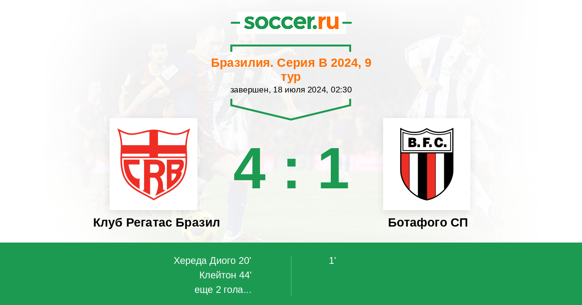 Протокол матча Клуб Регатас Бразил против Ботафого СП