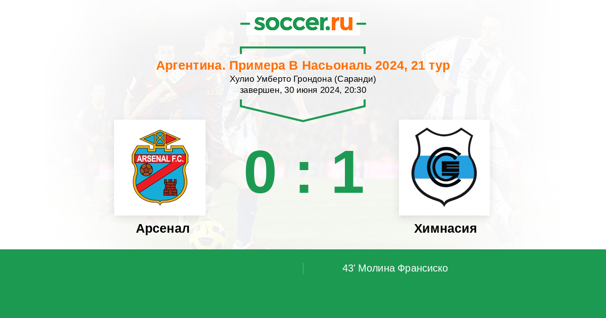 Протокол матча Арсенал против Химнасия