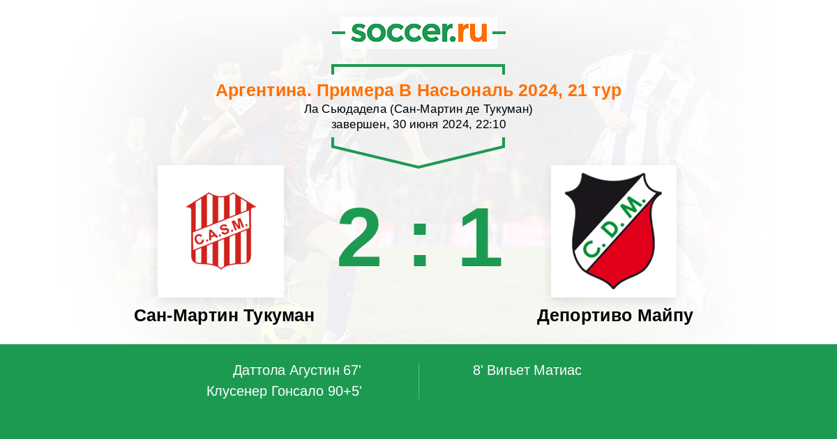 Протокол матча Сан-Мартин Тукуман против Депортиво Майпу