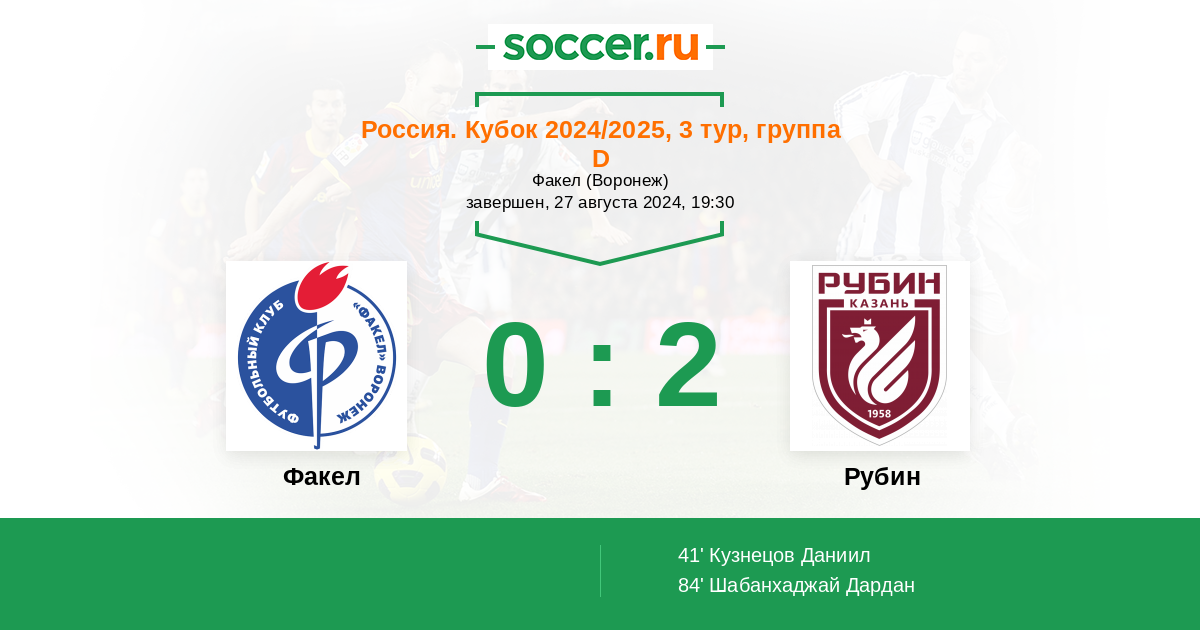 Протокол матча Факел против Рубин