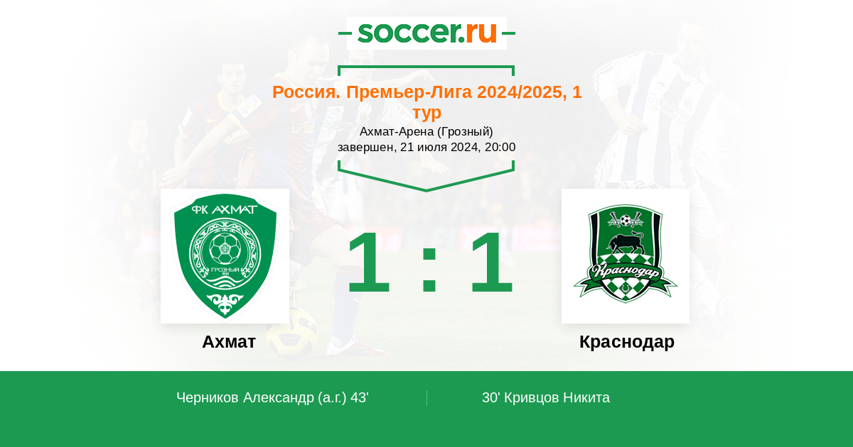 Краснодар играет в более атакующий и зрелищный футбол. Плюс ко всему, они уже вкатились в сезон отличным матчем за Суперкубок против Зенита. Ахмат, хоть и играет при своих болельщиках, но всё же, это им не поможет (как и не поможет наверняка присутствие на матче сами знаете кого...)
