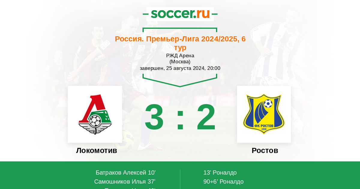 Протокол матча Локомотив против Ростов
