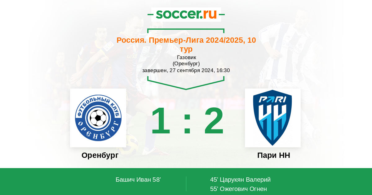 Протокол матча Оренбург против Пари НН