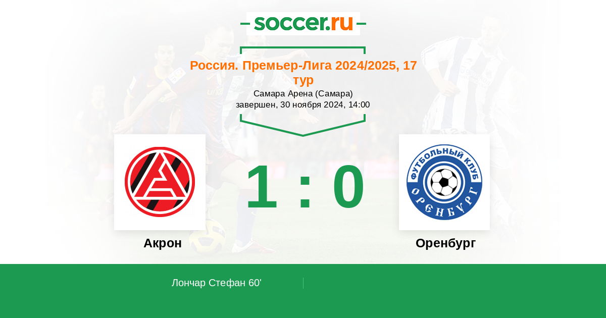 Протокол матча Акрон против Оренбург