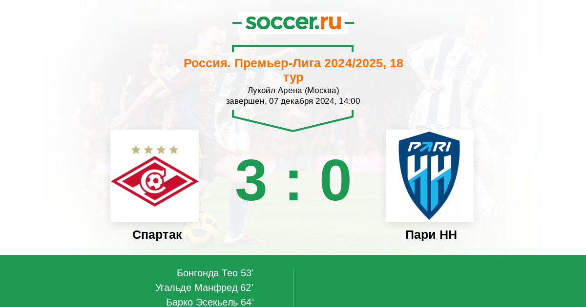 “Спартак” явно захочет уйти на зимнюю паузу красиво, одержав разгромную победу при своих болельщиках. Все футболисты находятся на пике своей формы, у них получается почти все. Про игроков “Пари НН”, к сожалению, такого сказать нельзя. Кажется, что они в разобранном состоянии и не могут оказать сопротивление топовым соперникам,