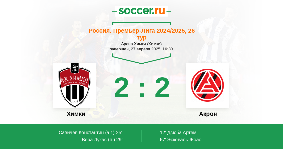 Протокол матча Химки против Акрон
