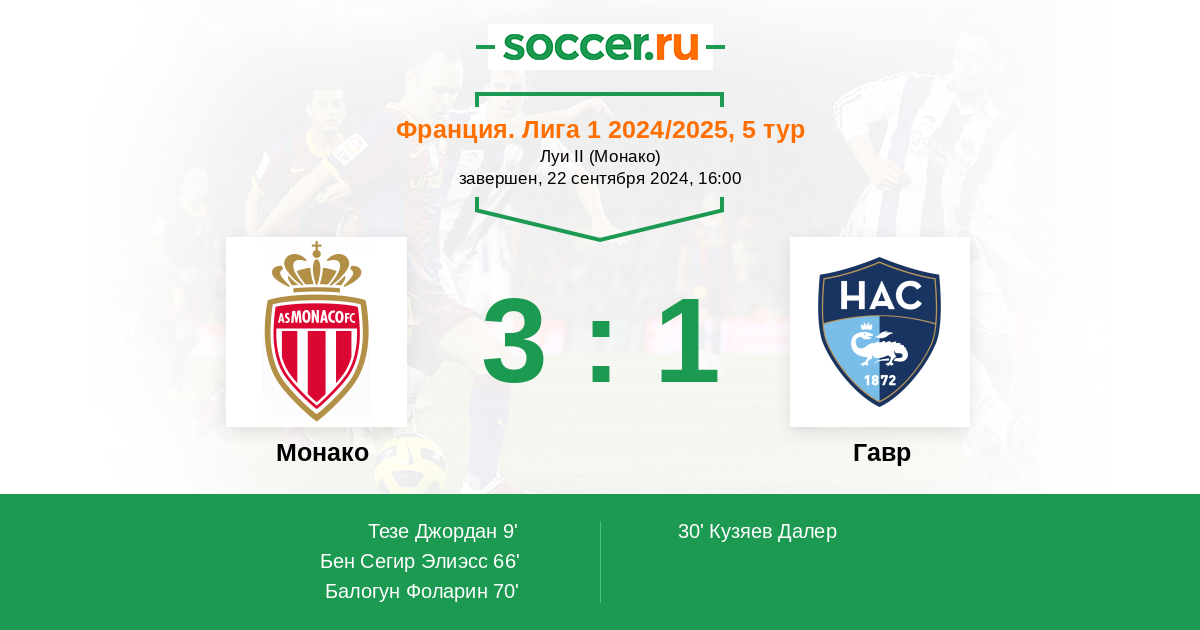 Протокол матча Монако против Гавр