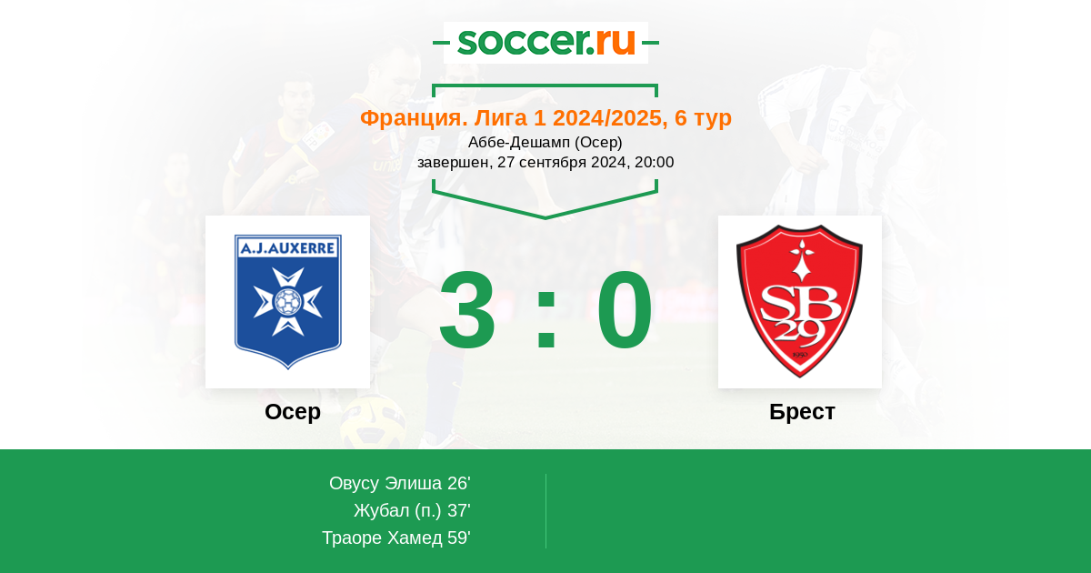 В матче французской Лиги 1 между командами Осер и Брест смею предположить победу гостей которые располагаются выше в турнирной таблице, плюс результативнее соперника играют в нападении и надёжнее в обороне.