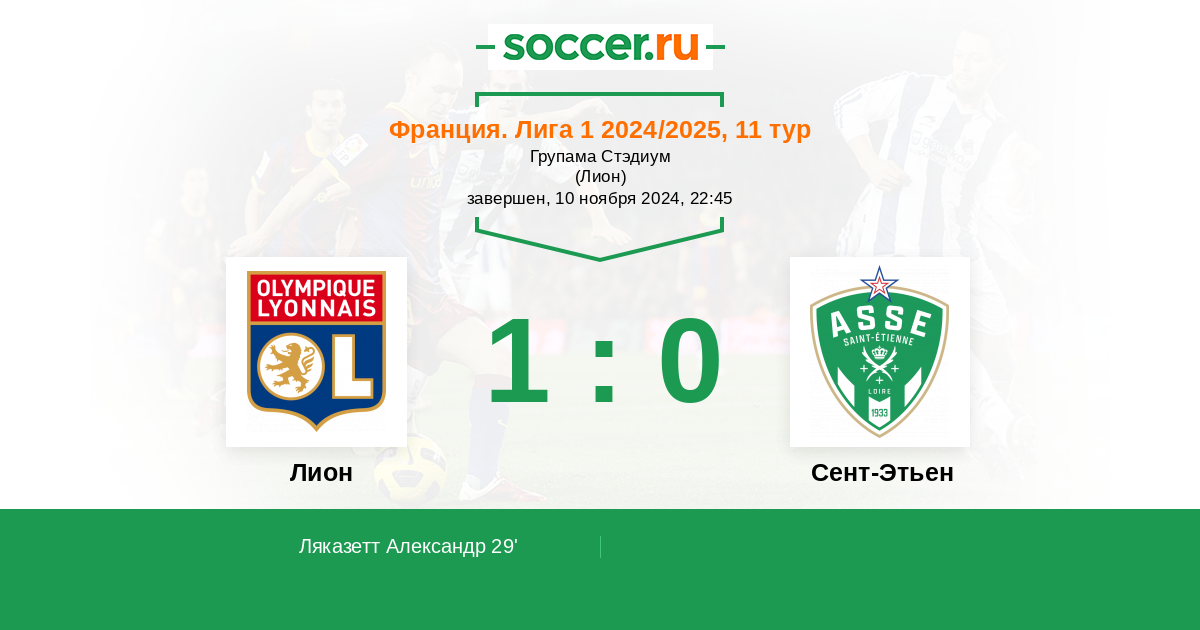 29' (1:0) Ляказетт Александр (10) (Толиссо Корентен (8))