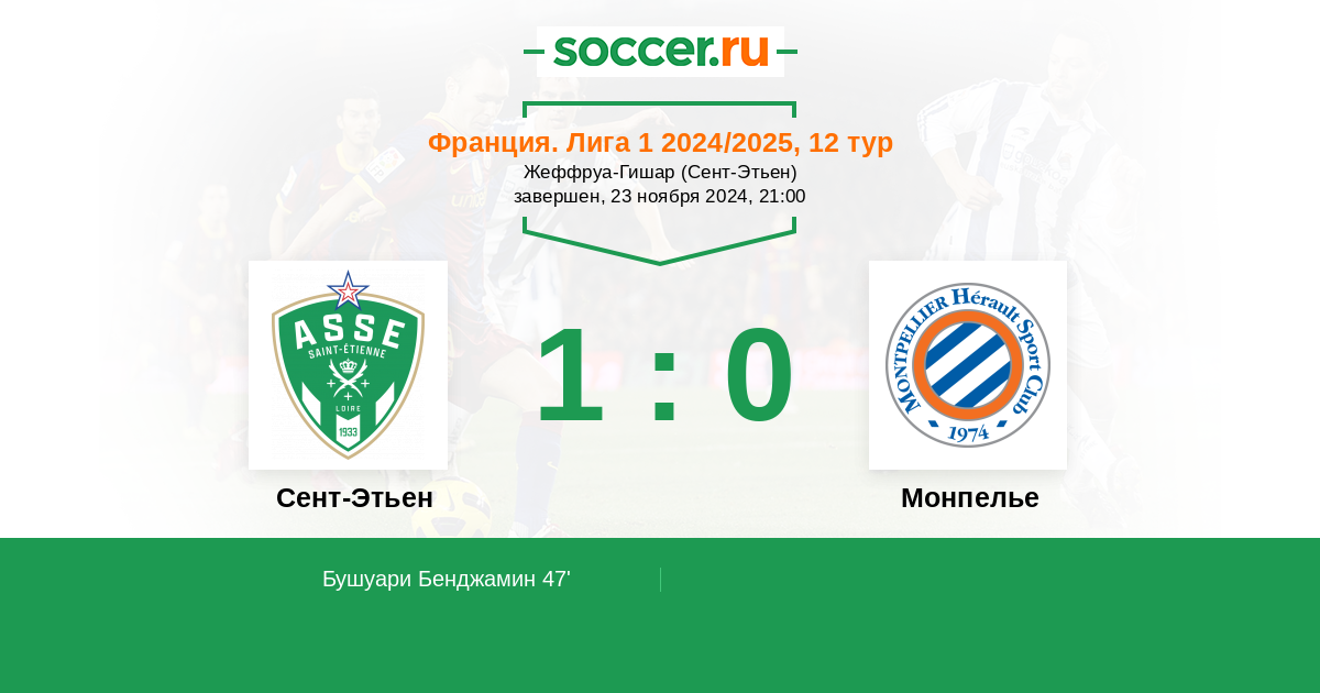 Протокол матча Сент-Этьен против Монпелье