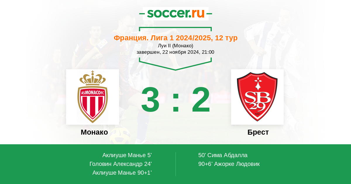 Протокол матча Монако против Брест
