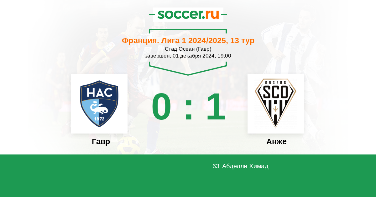 Протокол матча Гавр против Анже