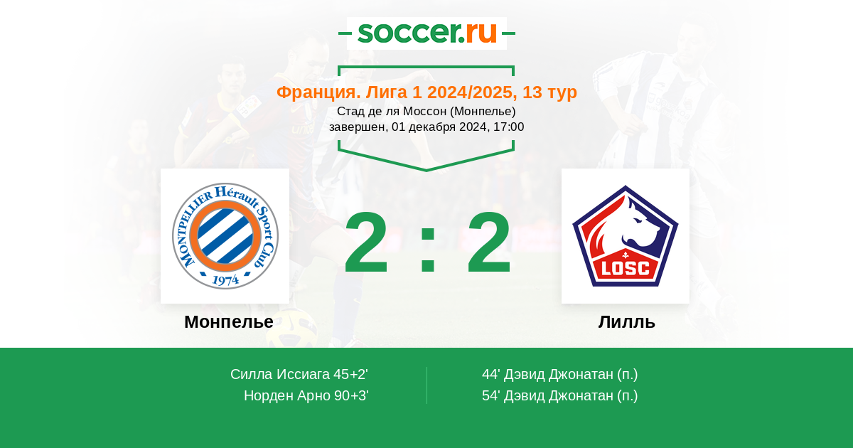 Протокол матча Монпелье против Лилль