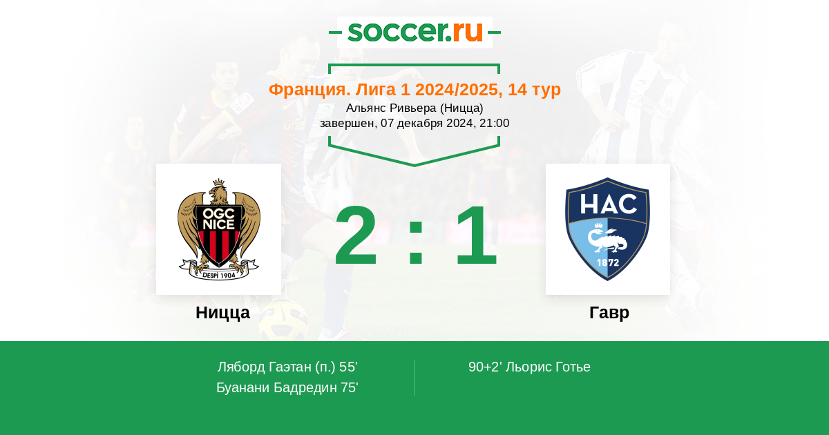 Протокол матча Ницца против Гавр