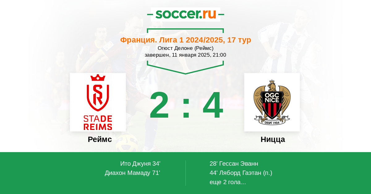Протокол матча Реймс против Ницца
