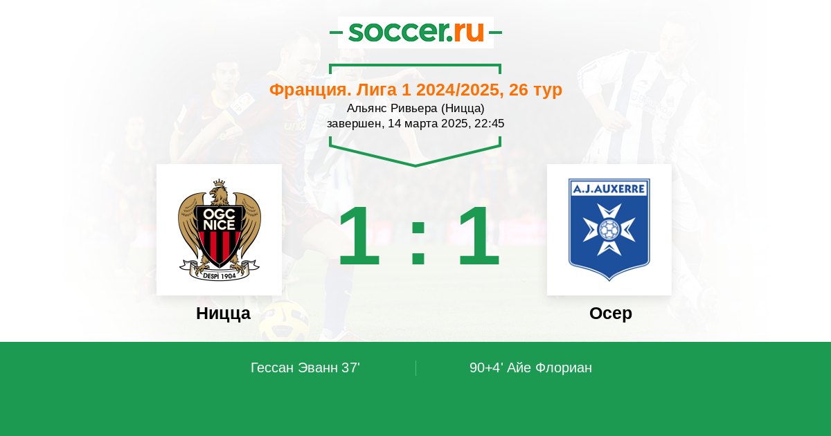 Протокол матча Ницца против Осер