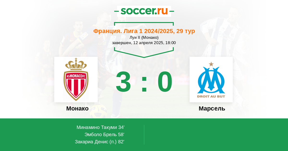 Протокол матча Монако против Марсель