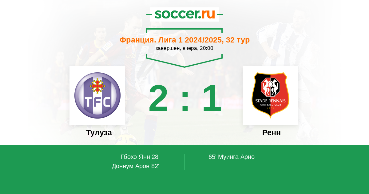 Протокол матча Тулуза против Ренн