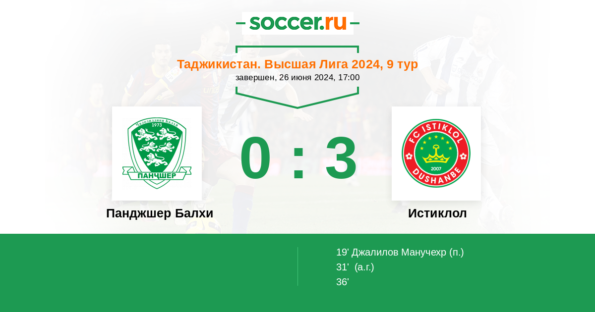 Протокол матча Панджшер Балхи против Истиклол